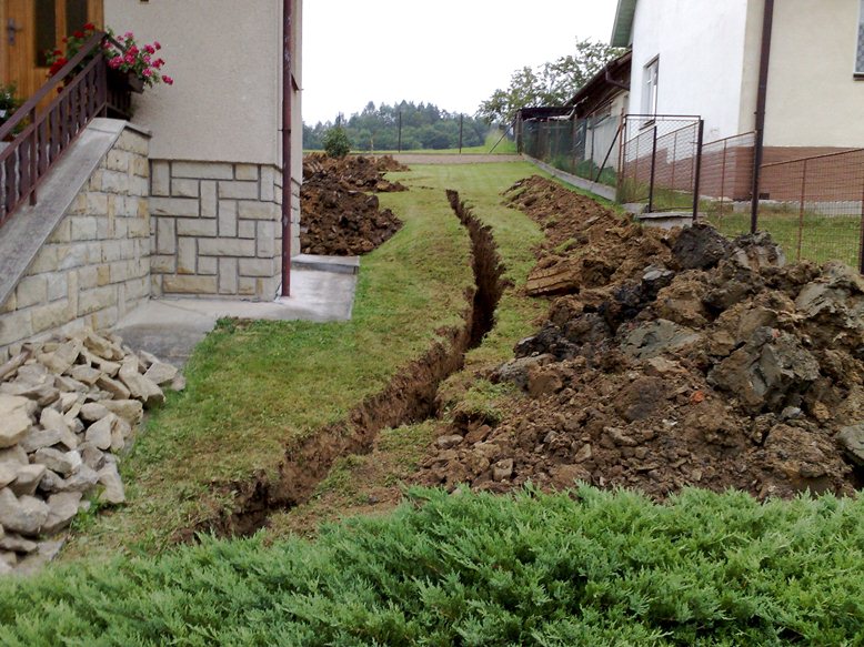 - septiky, přípojky, kanalizace, bazény, základy, svahování